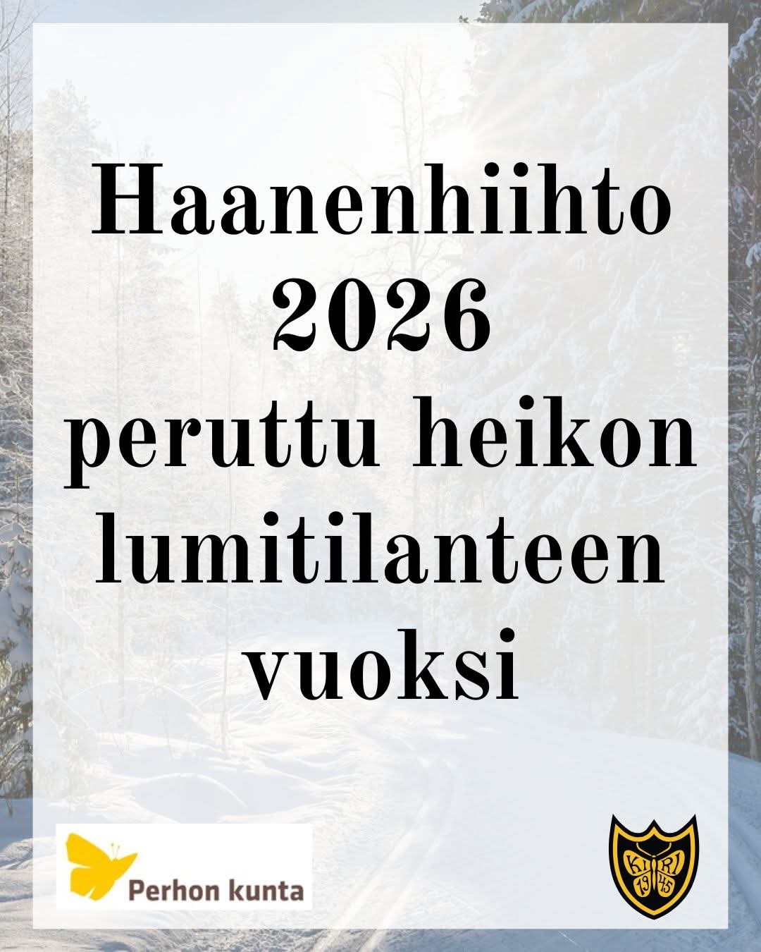 Perhon kirin järjestämä Haanenhiihto (14.3.) on tältä vuodelta peruttu huonon lumitilanteen vuoksi. Perhon kirin järjestämä Haanenhiihto (14.3.) on tältä vuodelta peruttu huonon lumitilanteen vuoksi. Liitteet