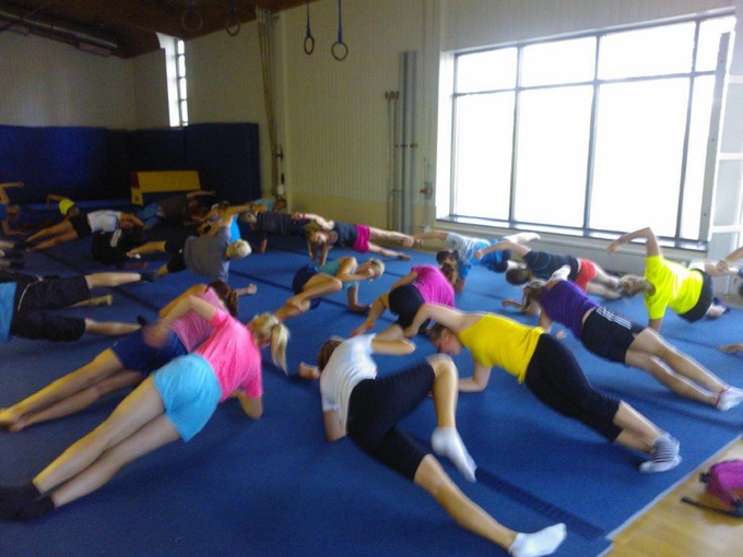 Aloitimme treenin verryttelemällä, jossa oli yksin ja pareittain erilaisia esim. kantamisia, yhteistyöliikkeitä ja salin päästä päähän hyppelyitä ja juoksuja. Alku verryttely kesti kauan. Juomatauon jälkeen parit ottivat matot ja niiden päällä teimme erilaisia " taisteluita", lihaskuntoliikkeitä ja parin nostamista. Lopuksi vielä venyttelimme.