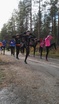 Aloitimme juoksutreenin verryttelemällä 20 minuuttia hölkäten ja kävellen. Meidät jaettiin neljään ryhmään, jotka oli tehty viimevuotisten hiihtoaikojen perusteella. Kaksi ensimmäistä vetoa meidän täytyi juosta 1 km:n lenkki 175 sykkeellä. Kaksi viimeistä vetoa meidän täytyi juosta mahdollisimman lujaa. Vetojen jälkeen juoksimme verrytellen takaisin Hiisituvalle.