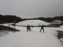 Neljän aikaan kaikki leiriläiset lähtivät hiihtoputkeen hiihtämään vapaata hiihtotapaa. Nuoremmilla se kesti 1.00h ja vanhemmilla 1.15-1.30h. Sen jälkeen käytiin vähän holkkäämässä. Hiihto palautti mukavasti aamupäivän sauvarinteestä. Illalla oli vielä lihashuoltoa eli venyttelyä.