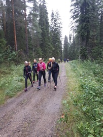 ![]() Lähtöpäivän sauvalenkillä. |
